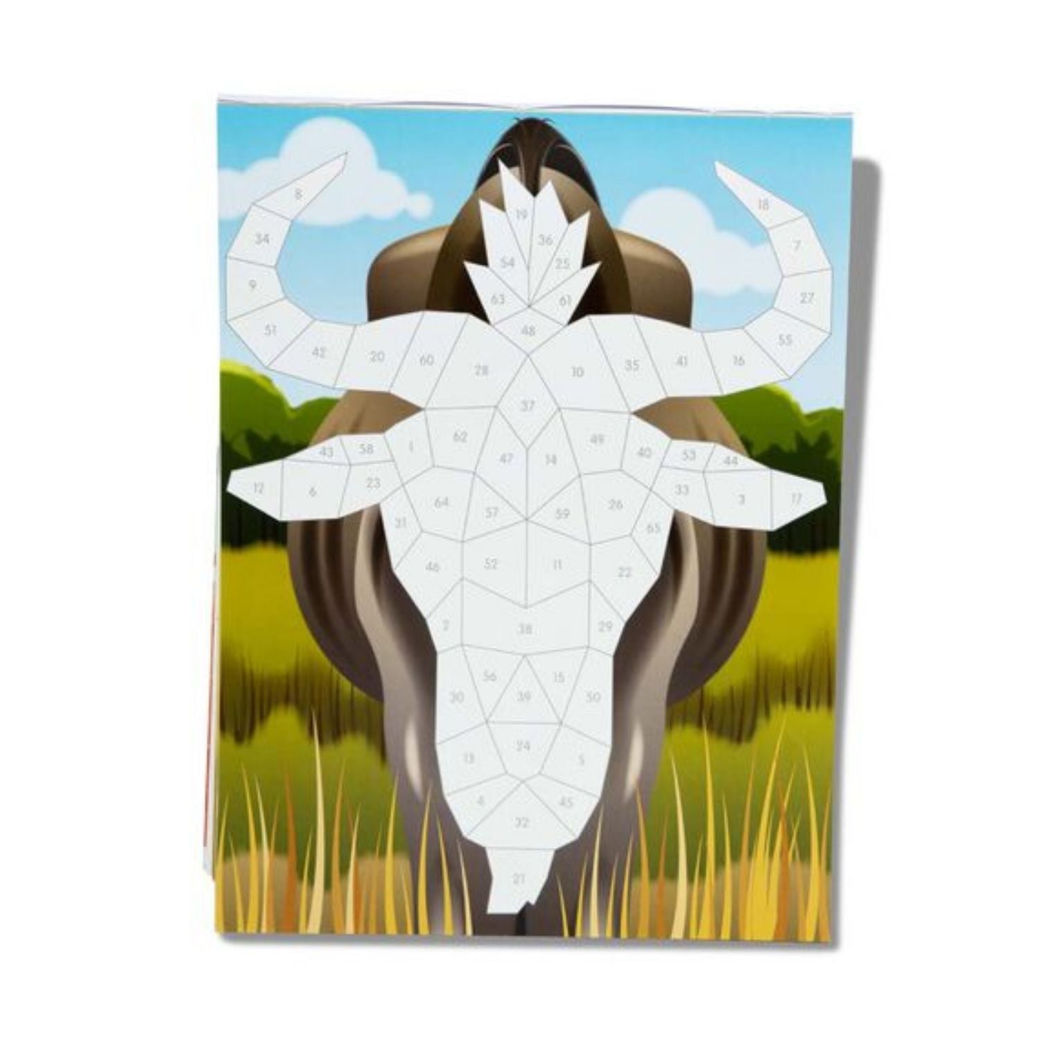 Piece together hundreds of colorful stickers to complete beautiful safari animal scenes! Match 12 pages of number-coded stickers to the numbered spaces on 12 pages of lushly drawn full-color scenes and see the safari animals come to life. Sticker sheets are removable for easy matching. It’s fun and easy for kids –and grown-ups, too!–to create mosaics of a zebra, flamingo, giraffe, hippo, rhino, and more with the more than 850 stickers. It’s a relaxing creative project for animal lovers seven to 107!