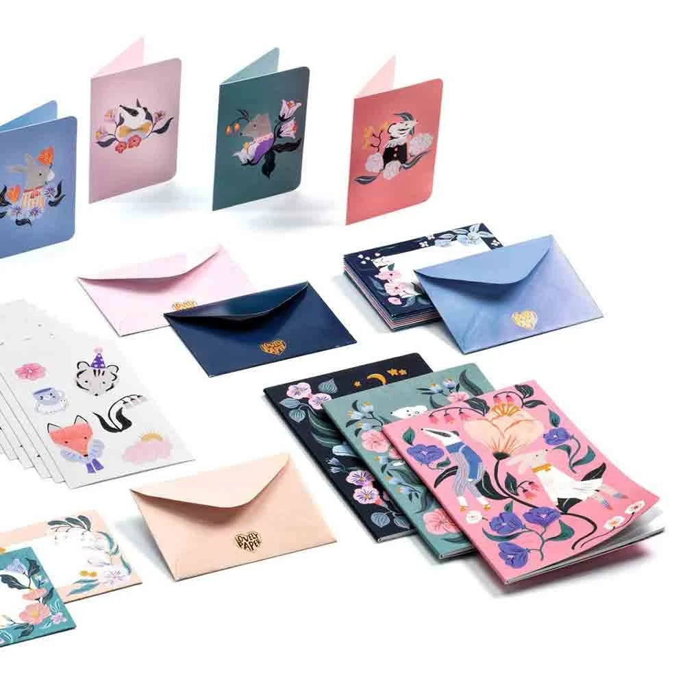 A beautifully-illustrated letter-writing set.