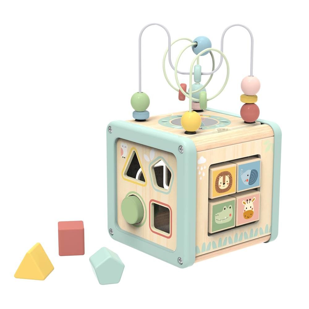 Stimulate play and keep young children entertained for hours as they explore each side of this educational, beautifully crafted classic toddler's Pastel Play Cube from TookyToy