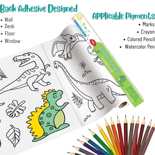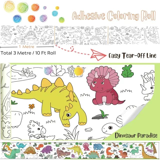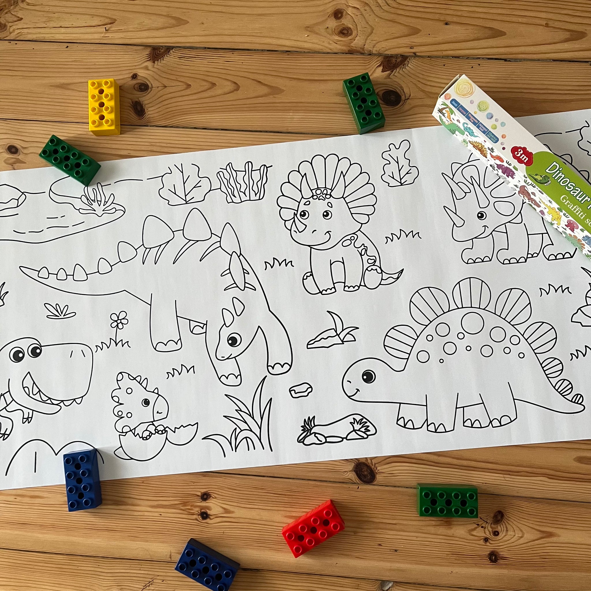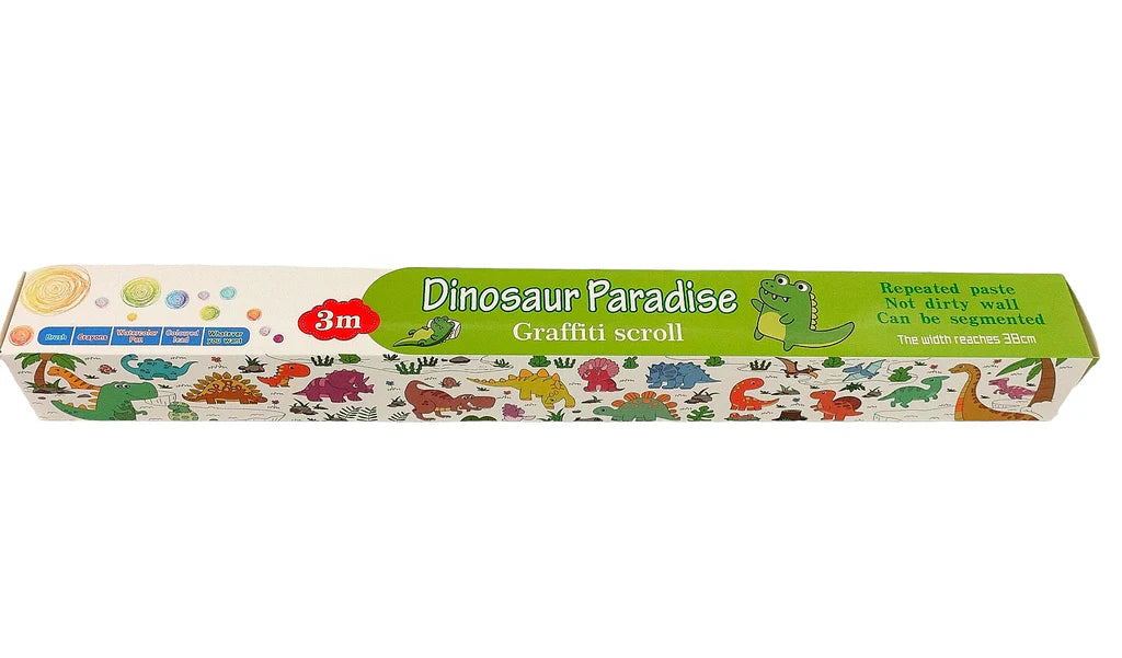 Turn any room into a dino paradise with this vibrant graffiti wall scroll! Perfect for unleashing your child's creativity with its colour-in design and easy, repeated stick-on application. Let the fun begin!