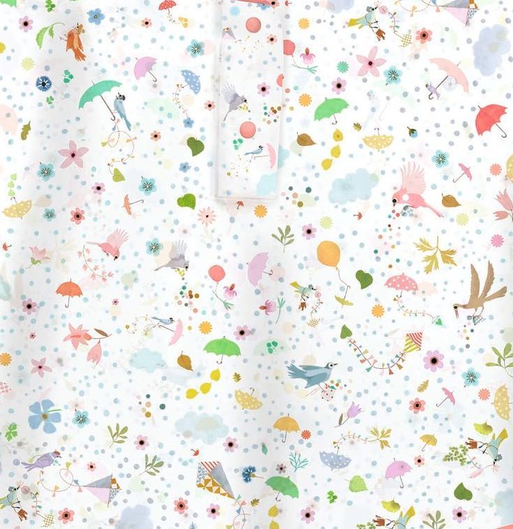 This chic and practical hooded rain cape, made for ages 5–7, features cheerful springtime illustrations.