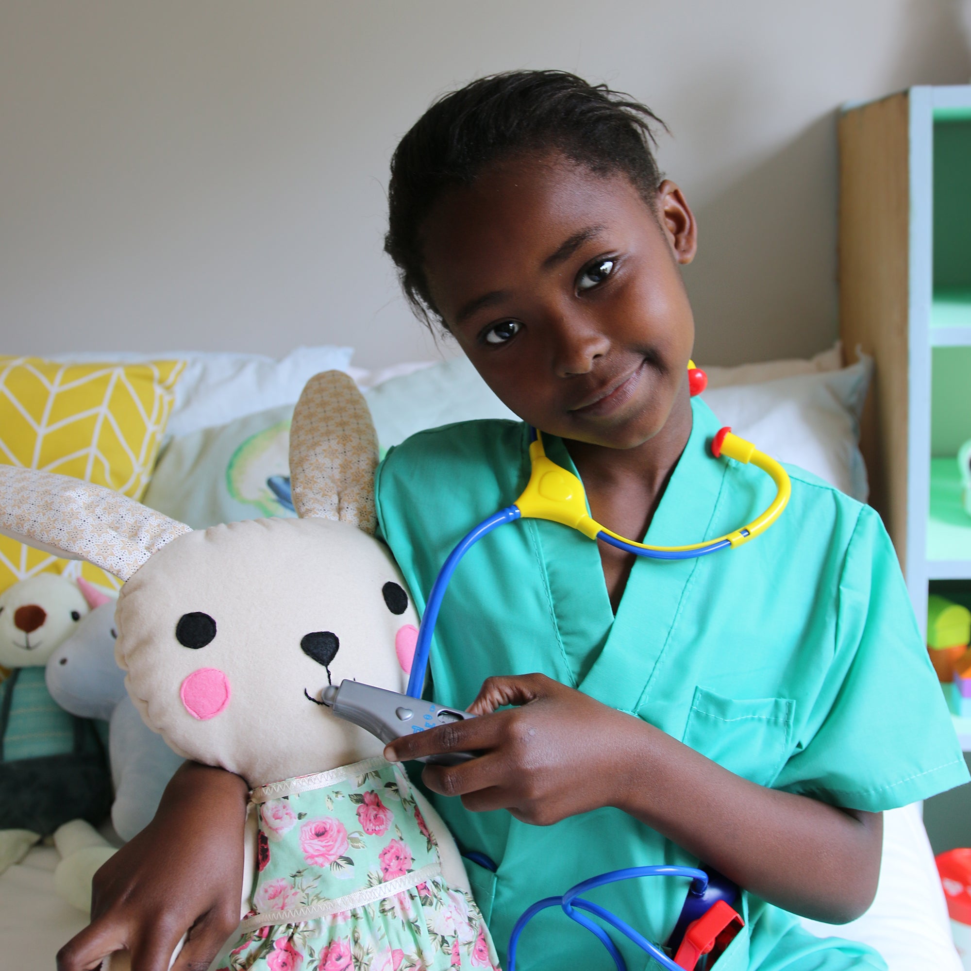 This Doctor Dress Up set includes everything needed for immersive imaginative play. This set of teal scrubs is super realistic and comfortable to wear, it also includes all the accessories needed for diagnosing and treating patients with a range of ailments.