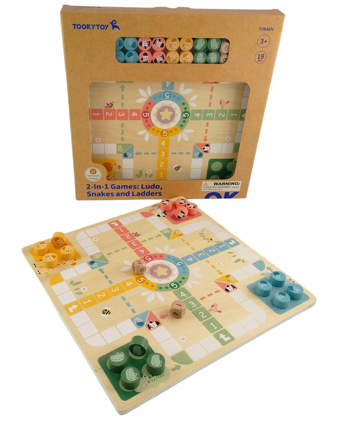 Introducing TookyToy's 2-in-1 Games Set: Ludo and Snakes & Ladders! Dive into the excitement of two classic games in one versatile package. Gather family and friends for hours of fun and friendly competition. With vibrant colors and durable construction, this set promises endless entertainment for children of all ages. Get ready to roll the dice, move your pieces, and embark on thrilling adventures with TookyToy's timeless games!