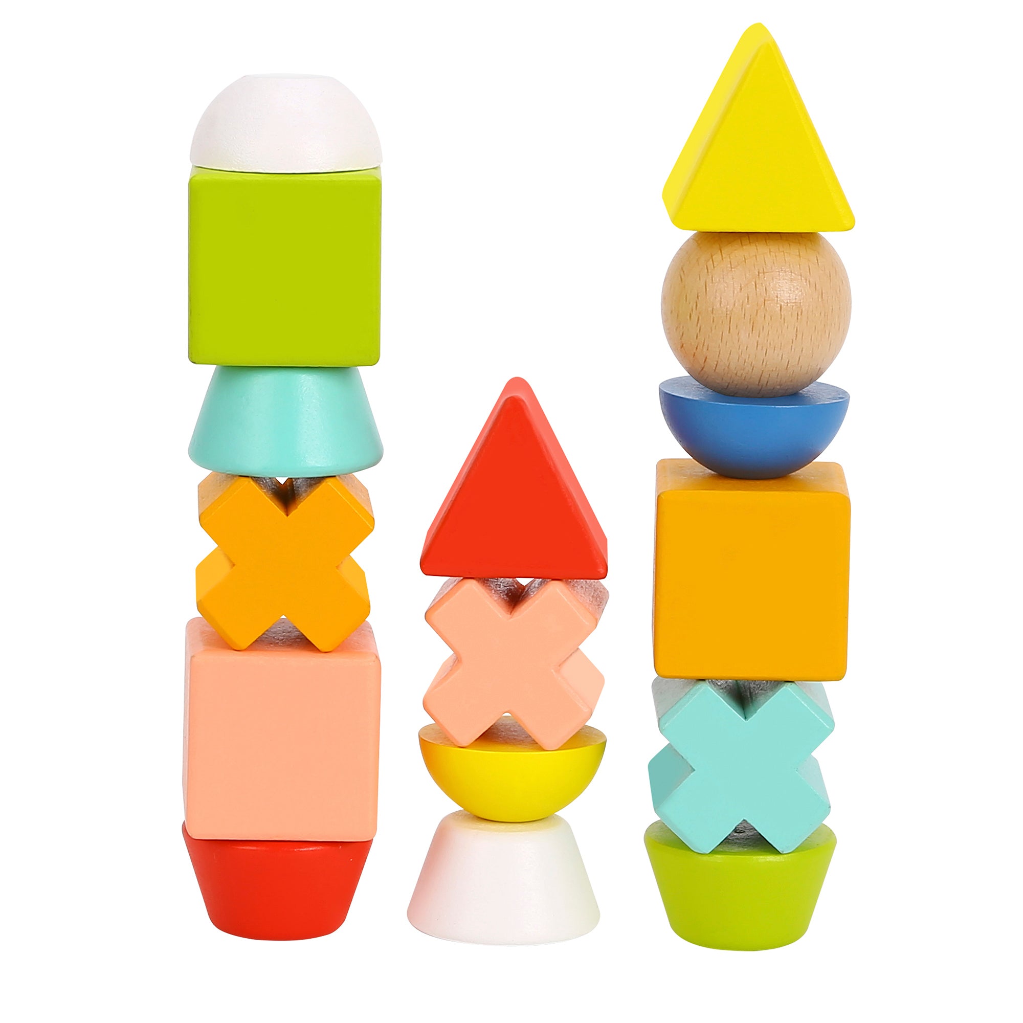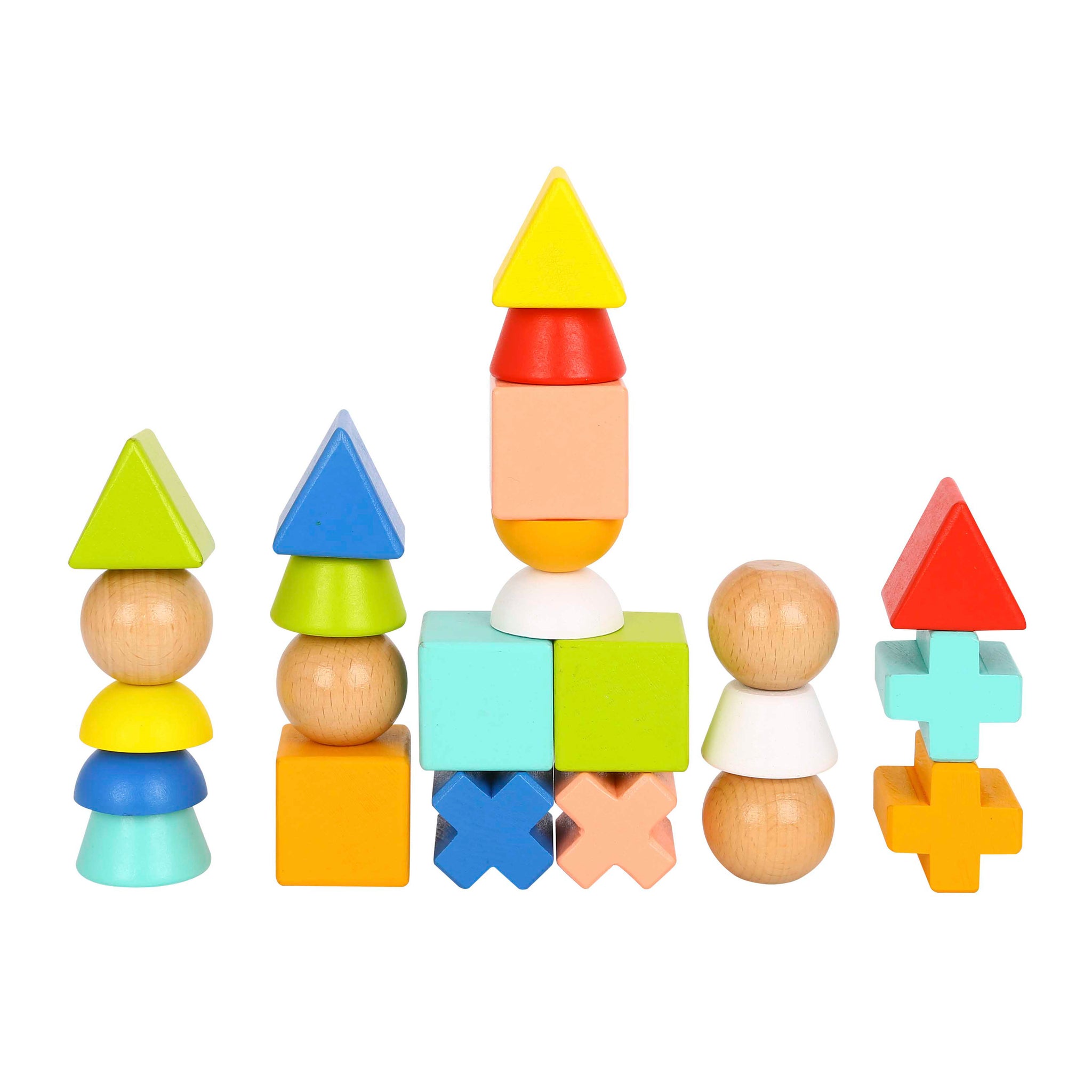 Traditional stacking blocks with a modern colourful twist. Children can explore mixing up the blocks, learning about sizes, shapes, colour combinations and designs. Endless design possibilities from only a few blocks. Made from high quality wood and non-toxic paint.