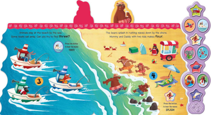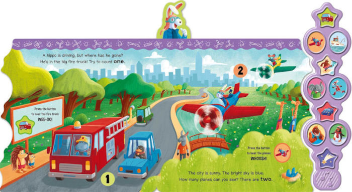 WEE-OO! WHOOSH! SPLASH! Learn your first numbers from 1 to 10 with this fun-filled noisy book. With 10 awesome interactive sound buttons and easy-to-use shaped tabs, this book is the perfect introduction for little ones to start learning their numbers.