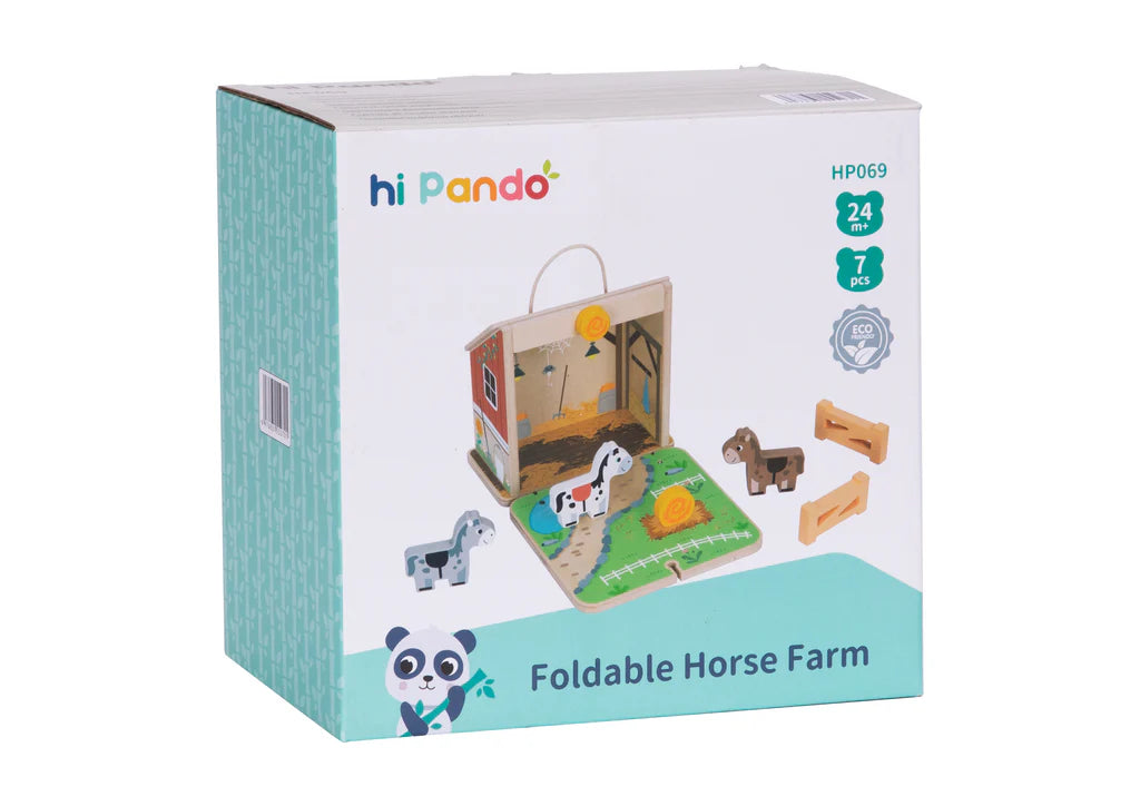 Bring the farm wherever you go with this charming foldable wooden horse farm set - perfect for on-the-go adventures and imaginative play.