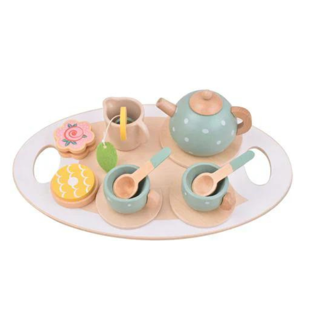 Unleash your child's imagination with our Wooden Afternoon Tea Set! Perfect for playtime, this set allows them to host their own tea party with friends. Made from durable wood, this playset is sure to provide hours of entertainment.