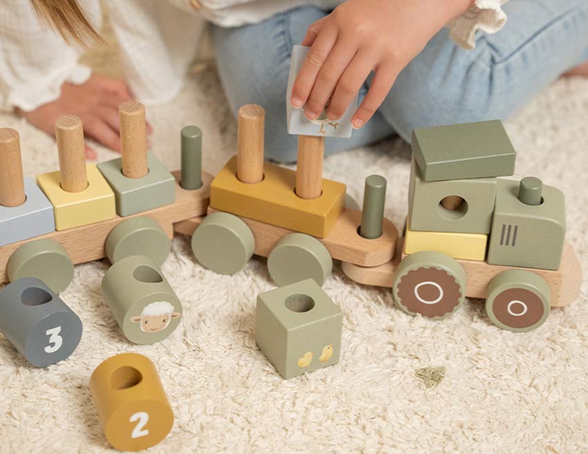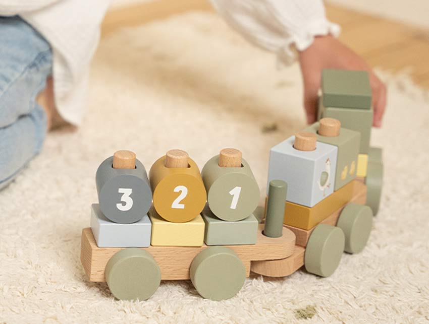 The beautiful wooden train from Little Dutch has fun patterns and numbers. With the blocks in various shapes and fresh, modern colors you can always make different wagons. The train consists of 17 parts in total and is ± 45 cm long. This toy remains fun to play with and is also a nice accessory for the nursery or children's room.