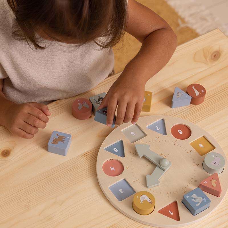 This puzzle clock is also great for learning about colours, numbers and shapes. Your little one will learn how to count and recognise the numbers and colours by matching the right shape, colours and number with the right slot.