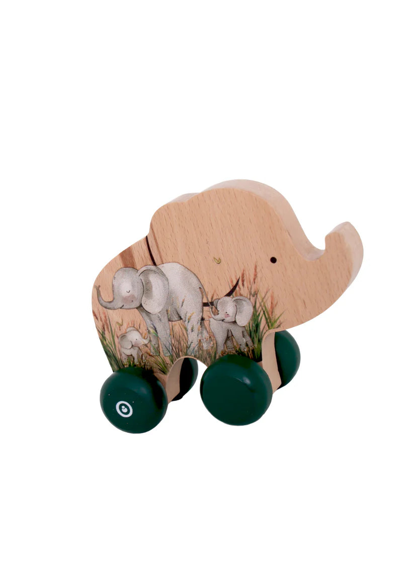 A wooden push toy in the shape of an elephant is always adorable! This Ellie was inspired by all African Elephants that roam our plains alone or in families.