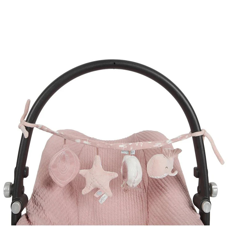 This Little Dutch stroller toy chain from the Ocean collection is easy to attach to a stroller or a car seat and provides lots of fun and entertainment on the road thanks to the rattle, the mirror and the squeaky and crinkly toys. It also stimulates the hand-eye coordination.