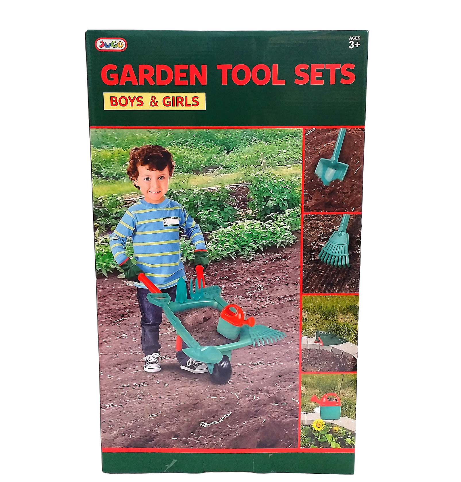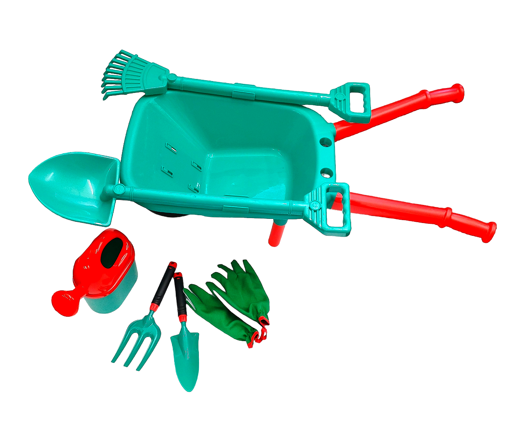 This Garden Tool Set is perfect for children, containing all the essential tools: a wheelbarrow, a spade, a rake, and a watering can. Equips your little gardener—develop their green thumb with hours of outdoor fun.