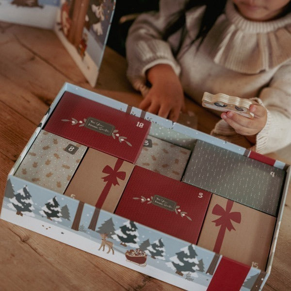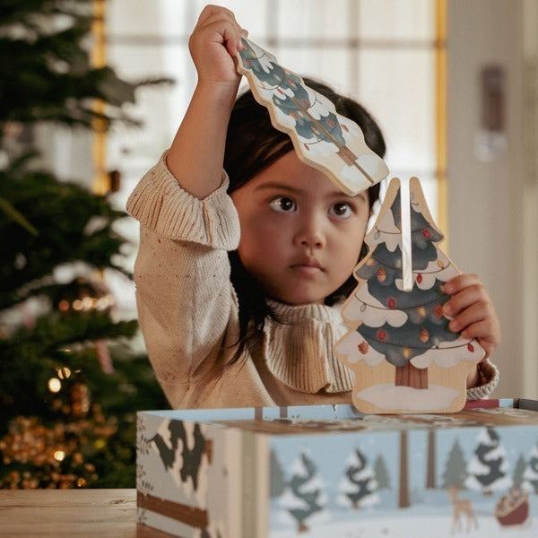 The countdown to Christmas has never been this much fun before! Open a package from the advent calendar every day in December to build your own Christmas village as the holidays draw near. The box features a sturdy cardboard back with winter-themed illustrations and 24 gift boxes containing 25 wooden figurines. Go skating in the plaza, buy your Christmas tree at the stable and ride your sleigh all around the village. After 24 days, Christmas will finally arrive!