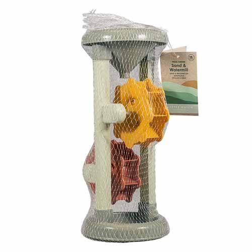 Have endless fun at the beach or in the sandpit with this sand and watermill toy. Pour sand or water into the top and watch the wheels spin. It comes neatly packed in a netted bag with a hangtag. The tower features two spinning wheels for extra excitement. It’s a playful way to explore gravity and speed while enjoying hours of outdoor fun.