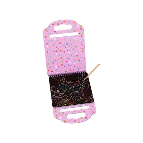 Featuring 6 scratch art pages neatly bound in a folding travel board, your child will enjoy scratching off the black paint to colour and reveal a fairy tale picture.
