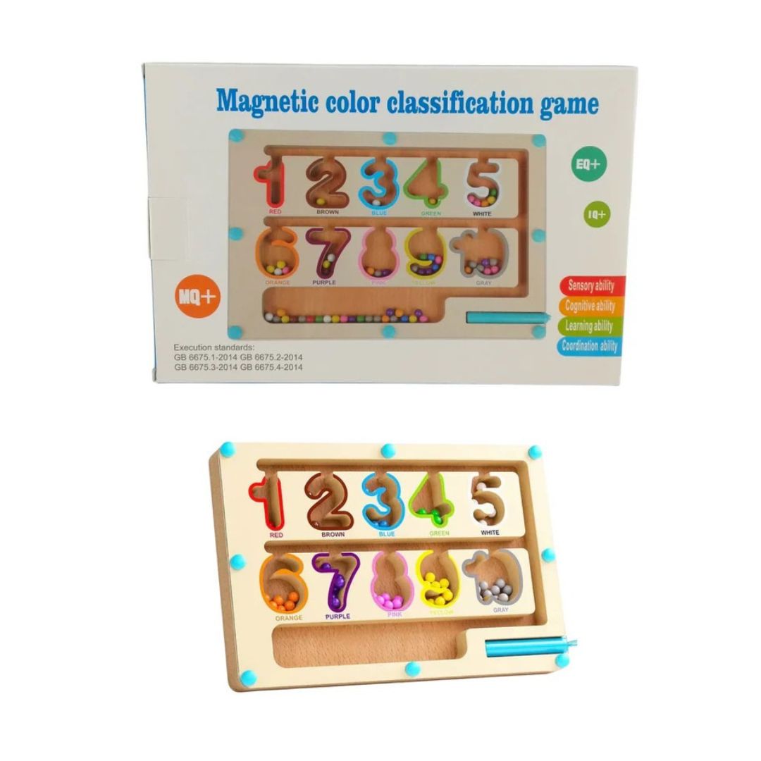 Make learning fun with this wooden magnetic bead set designed for colour and number recognition. Using the magnetic wand, kids can move beads into place, matching colours and counting as they go. It’s a hands-on way to strengthen fine motor skills, focus, and early math concepts.